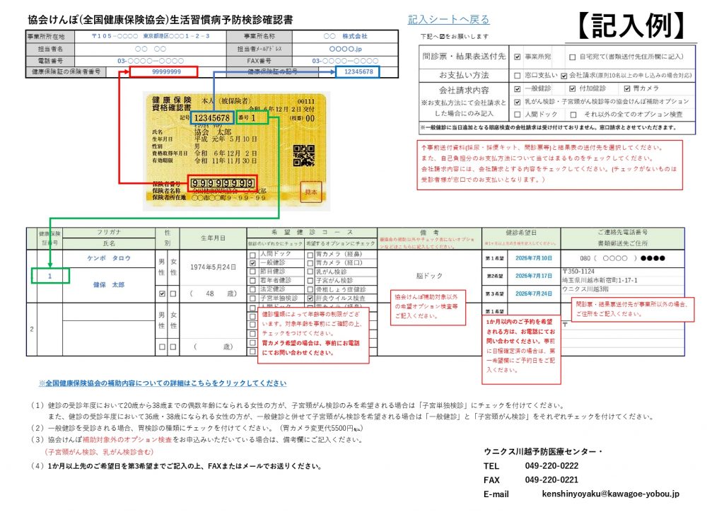 ②申込用紙(生活習慣病予防健診確認書)記入例